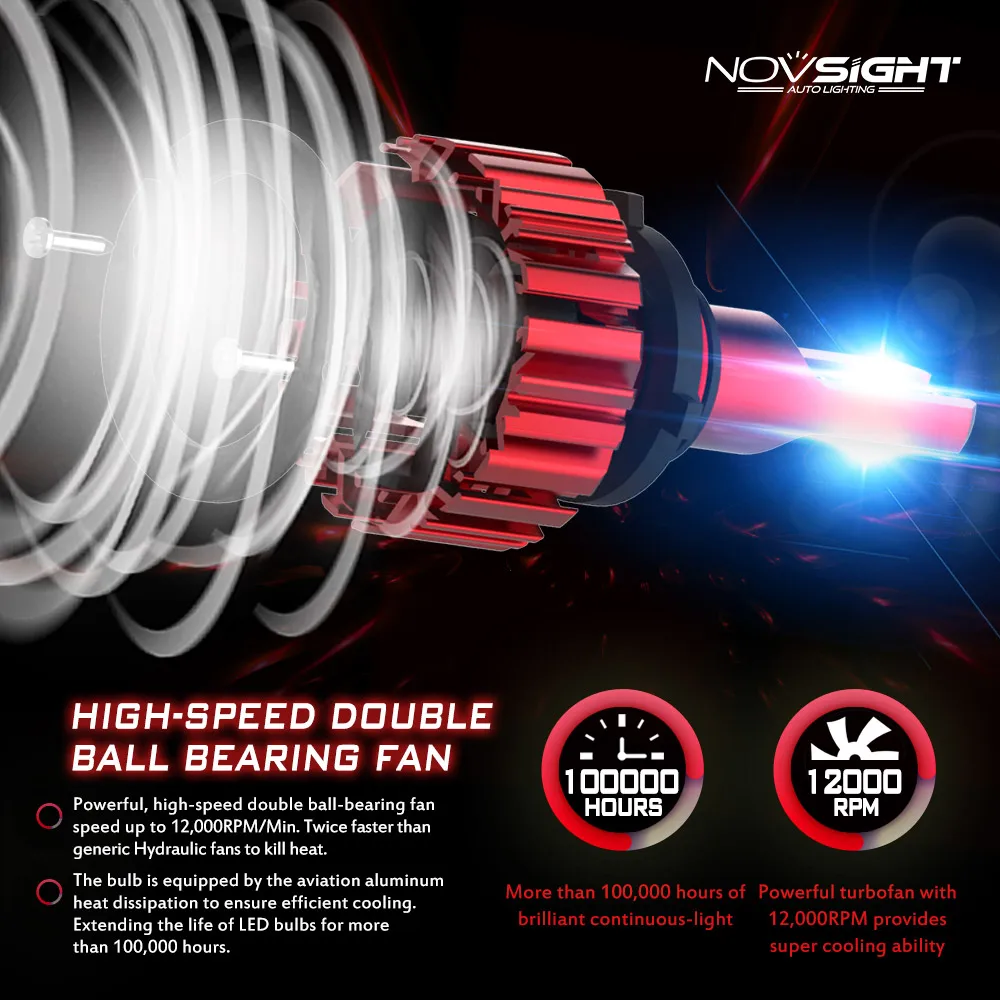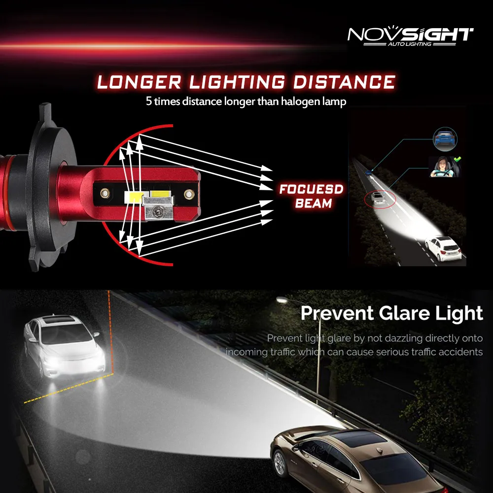 NOVSIGHT Car Headlight H4 Hi/Lo Beam LED H7 H1 H3 H8 H9 H11 H13 9005 9006 9007 50W 10000lm 6500K Auto Headlamp Fog Light Bulbs